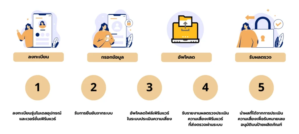 ทางสมาคมส่งเสริมนวัตกรรมเทคโนโลยีไซเบอร์ มีขั้นตอนการตรวจสอบผ่านระบบแพลตฟอร์มเพื่อใช้ในการตรวจสอบช่องโหว่และความเสี่ยงที่เกิดขึ้นกับระบบเฟิร์มแวร์จากอุปกรณ์ IoT